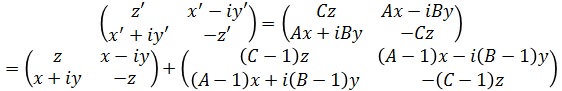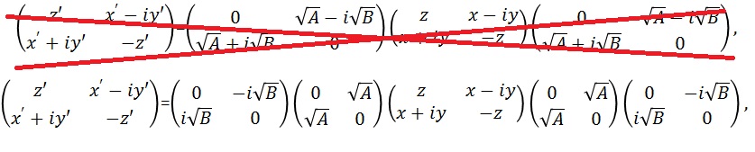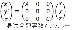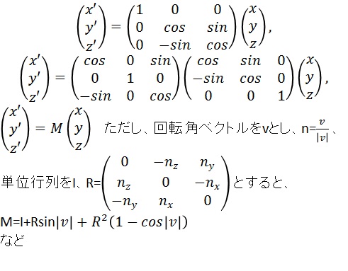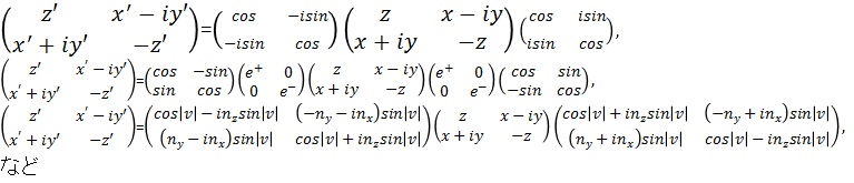 できることなら見なかったことに・・・あ、いや、でも見て? 実際消したくないし、ああどうすれば・・・そうだ概要だけ抽出して見るなんて器用なことしてみて見てみて? SU(2)での各軸スカラー倍はですね、結局、行列の掛け算ではどうしようもなさそうな気がしてきました。 で、思ったんですが、なにかトリックが必要なのではないか それに気づけばあっさりなのではないかと思ったのです。 これがその気づいたトリックの種明かしかどうかは疑問が残りますが まあ、こういうことも、できるよね・・・ SO(3)で余計なダミー次元「1」を足してるところを SU(2)では「1」差し引いてるあたり なんとなく双対ってる気もしなくもないんですよね(笑) あと、回転はSU(2)でもSO(3)でも似たようなやり方が2通りあって、平行移動がSO(3)では不得意でしたが、その分各軸のスカラー倍がSU(2)では不得意なんじゃないかなという点と 解決方法がSO(3)では掛け算、SU(2)では足し算なのが 対称的かどうかはわかりませんが、対照的ではあるかなと思ったんですよ。 まあ、パウリ行列SU(2)での表示状態からx,y,zの値を抽出したんならもういったんSO(3)で演算しちまえよっていう感じですよねwwww 抽出の仕方はいろいろありますよ 1行目1列目をそのまま抽出してzとしてもいいですし 1行目2列目の実部を取ってxとしてもいいですし 1行目2列目からに2行目1列目を引いて、-2iで割ってyとしてもいいですし ![]() にほんブログ村