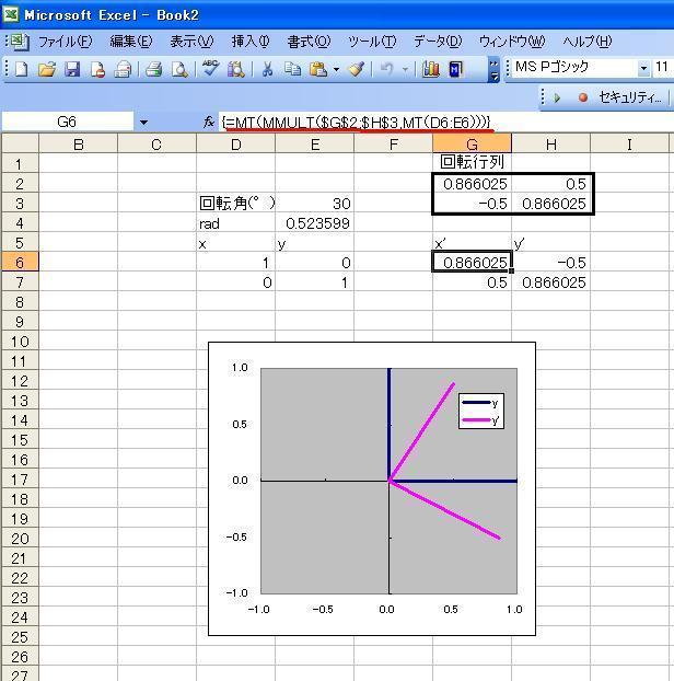 x-y平面から30度傾けたx'-y'平面を描写するのに なぜかわざわざ逐一 x'=x*cosθ+y*sinθ y'=-x*sinθ+y*cosθ とか入力してたりする。計算式でケアレスミスがでがち 回転行列かければいいのによー ======== パート2 回転行列利用するにしても、一旦転置なり行と列の入れ替えなりして列ベクトルに直してから回転行列を左から掛け、その結果の縦ベクトルを再度横ベクトルに戻すとかいう厄介なことを行っていたりする。 なかなか煩雑 ======== パート3 手間とスペースを省くために一連の計算をいっぺんに行う。 が、多数のベクトルを扱うと無駄な2回の転置のため処理に時間がかかる。 扱うベクトル(というか点)がたくさんあるほど処理落ちする ======== パート4 回転行列を横ベクトルの左に掛けれないなら右に掛ければいいじゃない (ただし回転角は符号が逆になる) 処理もコピペで済むし計算に手間取らない しかし3次元ベクトルだとジンバルロック問題が残る クォータニオンはジンバルロックがないが、エクセルでやるには手続きがちょい面倒。 matrixアドインを入れたら固有値近辺以外では複素数の使い勝手が案外よく、行列形式でクォータニオンを扱えないか検討中。 パウリ行列との関係性が理解できればなぁ あくまでマクロは組まない主義。組まなければいけないマクロは手短に。 ![]() にほんブログ村 PR ![]() ![]() |