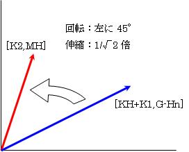 簿記2級の過去問鬼畜すぎワロタ ↓これが問題用紙 (図がぼやけているときはクリックすればしっかり見えます) で、こっちが答案用紙↓ 色をつけたところが鬼畜ポイント 答案用紙の赤●部分が求まらないと、青●部分も計算できない。 もし、配点箇所が10個あってそのうちの6個全部が赤丸と青丸で占められていたら60%爆死。(まあそこまで鬼畜ではないだろうけど) で、赤丸部分の未払法人税等と繰越利益剰余金は当期純利益から求めることになっていて 当期純利益を求める「損益計算書」の答案用紙は今回に限っては存在しない。 つまり計算用紙でやれってこと。 その努力はまんま採点の対象外。努力が報われない問題の典型。 あんまり問題が鬼畜だったので頭にきて、連立方程式を立て始めた。 普段は「損益計算書」と「貸借対照表」がセットで答案用紙になることが多く、当期純利益はどちらからも求めることが原理的には可能だ。 しかしながら2級の場合、法人税等と繰越利益剰余金のせいで、貸借対照表から直接、当期純利益を求めることはできない。 税引き前の当期純利益の何割かが法人税等になるわけだし、 残った税引き後の当期純利益は、「繰越利益剰余金に追加されて計上される」わけで・・・なんか循環してるような感じ。 2級の貸借対照表では当期純利益そのものは隠れてて見えないんだよ! 循環参照するなら連立方程式を立てるまでよ そこで立てた連立方程式がコレ K2-K1=R/2 MH+KH=H=R/2 G-Hn=MH+K2 K1:決算前の繰越利益剰余金Kurikosi1 K2:決算後、法人税等を控除したあとの当期純利益を加えた繰越利益剰余金 Kurikosi2 R:当期純利益 Rieki MH:未払法人税等 MibaHoujin KH:仮払法人税等 KariHoujin H:法人税等 Houjin G:貸方合計=借方合計 Goke Hn:貸方の、歯抜け(未払法人税等と繰越利益剰余金(後))以外の合計。 HaNuke 資料などから既知なのは、K1、G、Hn、KH 求めたいのはMHとK2の2つ 未知でありかつ、求める予定のない媒介変数はRとH なので、文字8つ、式3つの状態から 式と未知数2つでRとHを含まない連立方程式にしなければならないことがわかる。 よって整理すると、 K2-MH=KH+K1 K2+MH=G-Hn の連立方程式にできる。 少し調子に乗って、行列方程式にしてみよう。 ↓こうなる ([[1,-1],[1,1]]t[K2,MH]=t[KH+K1,G-Hn] ) (行列の左にあるtは行と列を入れ替える転置行列、つまりこの場合は行ベクトルを列ベクトルとして表現している、の意。) 既知の文字は KH=180、K1=70、G=9713.5で Hn=131+288+54+22.5+1924+696+5000+420+250+180=8965.5 なので、右辺はt[250,748]となることがわかるだろう。 これに、 [[1,-1],[1,1]]の逆行列を左から両辺にかければ、計算したいt[K2,MH]行列が求まる。 あとはexcelで、逆行列を計算するminverse関数と行列の積を求めるmmult関数を使って計算すれば、繰越利益剰余金K2=499と未払法人税MH=249がすぐに算出できる。 (もちろん普通に連立方程式を解いても結果は同じ) (配列対応のためのctrl+shift+enter忘れんなよ!) (単位はキロ円) 簿記の問題を解いていて、気づいたらいつの間にか連立方程式を立てていた とはまさにこのこと。 しかしこの連立方程式は多少だけれども汎用性があるだろう。 法人税と繰越利益剰余金のせいで当期純利益が隠れてしまっている貸借対照表のみの財務諸表作成、というかなり汎用性の高い状況(笑)に使用可能だ。 そのうち、当期純利益の50%だけでなく任意の割合を法人税等に割り当てる計算にも拡張したい。 ところで、この行列方程式の中にある[[1,-1],[1,1]]という行列 どこかで見覚えはないだろうか? そう、これはベクトルを回転させる行列に定数をかけたものなのだ。 回転角度は45度 つまり、[[cos45°,-sin45°],[sin45°,cos45°]] =[[1/√2,-1/√2],[1/√2,1/√2]]全体に、√2をかけたものだったのだ。 よく見ると、[[1,-1],[1,1]]の行列、行列式が2で、固有値が±i√2である。 (絶対値は√2) (固有値を全部かけると行列式に等しくなる) つまり、この行列は[KH+K1,G-Hn]でできたベクトルを、右に45°回転させて、長さを√2倍に伸ばして[K2,MH]のベクトルを作る作用のある行列だったわけだ。 したがって、今回の行列方程式を解く作業はその逆、つまり左に45°回転させて、ベクトルの長さを√2分の1に縮める作業だったのだといえる。 おそらく、赤と青が45°の関係を保ちながら、x軸とy軸をまたがないという制約があるだろう。 xもyもどちらも値段の量なので、負の値をとりそうにない故。 つまり、赤がy軸と平行の場合(K2=0:赤字ギリギリ)はKH+K1+Hn=Gであり、 青がx軸と平行の場合(G=Hn)はK2=MHである(この状況はなにを意味するんだろう?) と、そこが理論上の端っこ(極値?)なのではないかと考えられる。 そういえば、ベクトルと複素数は同じように要素が2つなのに、回転時の演算が全然違う。 角度θだけ回転させたいのなら ベクトルならわざわざ回転させるための行列なんて概念を持ち出して、元々横だったベクトルを縦にしてから掛け算し、できた列ベクトルを再び行ベクトルに戻す。 しかし、複素数ならいたって簡単、exp(iθ)をかけるだけでいい。 また逆回転さ