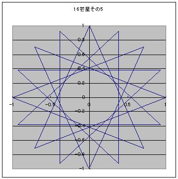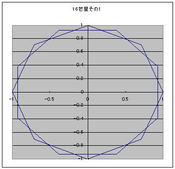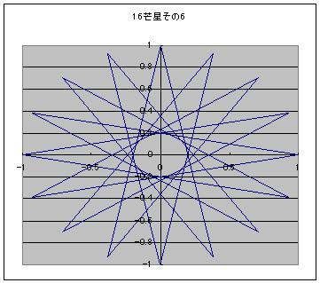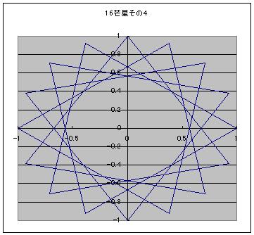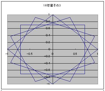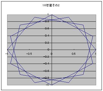 なんで5なんていう中途半端な数なんだろう。 そう思って3芒星を描いてみた。三角形に・・・ 描けないので、4芒星を描いてみた。四角形に・・・ やっぱり描けない。 なぜ描けない!? そもそも五芒星はどのように描かれている? 五角形の頂点を1つまたぎで結んで描かれている。 だから、点が3つとか4つしかない三角形や四角形だと、1つまたぎ自体ができないので不可能というわけだ。 5という数字は、五芒星が一番数の少ないn芒星であることからきているっぽい。 5より下がるのは無理ということがわかった。 では1つ増やして6、六芒星も割りとメジャーなものだろう。 しかし、その性質は五芒星とはやや異なる。 五芒星は一筆書きができるのに対して、六芒星は一筆書きができない。 七芒星だとどうなるのか? 七角形には頂点が7つある。ここで、五芒星や六芒星では見えてこなかったものが見えてくる。 頂点1つ飛ばしのほかに、2つ飛ばしでの描画が可能になるのだ。 つまり七芒星の描き方は2パターンある。 次に八芒星。 八芒星も頂点1つ飛ばしと2つ飛ばしの2通りが可能なため、2パターンの描き方が存在する。 九芒星もやってみよう。 九芒星は3パターンあることがわかった。 そのうちの、頂点2つ飛ばしの描画に興味深いことを見つけた。 3つの3角形に分離するのである。 これは、六芒星のときに類似の現象を見かけた。 つまり六芒星は1つしかないパターン自体が、2つの三角形に分離する。 そうすると、だんだんパターンが見えてくる。 3番目の奇数nから始まるn角形からn芒星は作ることができ m番目の奇数と偶数からなるn角形によるn芒星はm-2パターンの描画方法が存在する。 また、nが約数Lを持ち、頂点をk+1つ飛ばした描画においてk+1も共通するLを持つとき、一筆書きができなくなる。(たぶん) 16芒星の6パターンを図に示す。 ここで、 m番目の奇数と偶数からなるn角形によるn芒星はm-2パターンの描画方法が存在する。 に注目すると n角形におけるn芒星のパターン数anは n→an 5→1 6→1 7→2 8→2 9→3 10→3 11→4 12→4 13→5 14→5 と続いていくことがわかる。 この数列の一般式を求めてみたい。 まずは偶数と奇数の式を分けよう。 n2つ分に対してanが1つ増えるのであるから anをnの関数と考えた場合、傾き1/2の直線であることがわかる。 直線であるから、傾きがわかれば残りは切片がわかれば直線の式は決定する。 nが奇数の場合はn=5、an=1を通るため切片が-3/2、 よってan=n/2-3/2 であり nが偶数の場合はn=6、an=1を通るため切片が-2、 よってan=n/2-2 という数列であることがわかった。 それではこの式を偶数にも奇数にも使えるように統一する。 まず共通部分を探すと an=n/2-3/2までは共通である。 これに-1/2を加えるかどうかだけが異なるのだが 1を加えるかどうかを表現するよりは +1を加えるか、-1を加えるかという切り替えのほうが表現としてはたやすい。 つまり、(-1)^nの形式である。 結局、この処理を施すとanは an=(2n-7-(-1)n)/4 という数列になる。 全体を4で割っているが、anはちゃんと整数として出てくる。 ためしに、2n-7-(1)^nのnに整数を入れてみてもらうと、結果がすべて4の倍数であることがわかるだろう。 つまり、n角形からはan=(2n-7-(1)^n)/4種類のn芒星が作れるというわけだ。 ↓ゴンスケ「牛蒡の星へ、レッツラドン! にほんブログ村 にほんブログ村