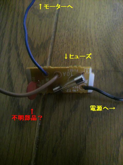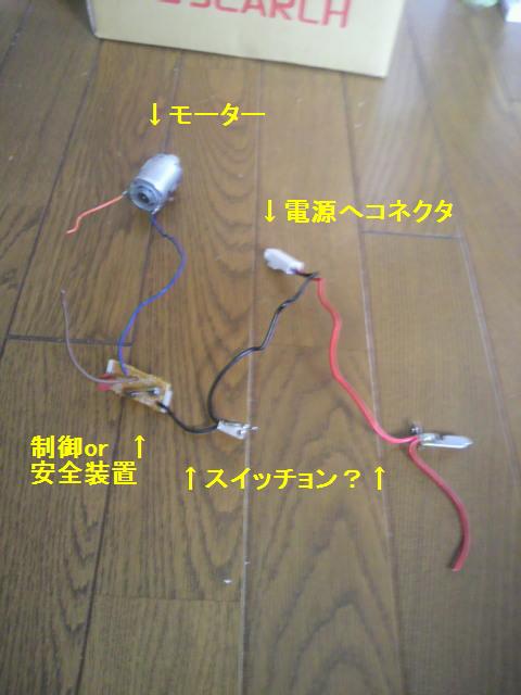 僕の話す内容がつまらなすぎて女の子には呆れられ、付き添いの男子(助っ人)にはダメ出しを食らう夢を見た。 助っ人よ・・・何を言っていたのだ・・・。全然覚えてないぞ。 僕自身の夢なので、助っ人も僕の作り出したものと言えるが、それでは助っ人のアドバイスというのはどこからくるのか。 覚えていないというより、はじめからその人はダメ出しをしたつもりで何も伝えてはいないのではないか? どうも、つまらなすぎてつまらない日記選手権、前回優勝者の量子きのこです。おはようございます。今日もつまらない話をします。 先日、親父が要らなくなった掃除機を捨てまして、その際に「何かに使えるんじゃないか」とかいう親父の発想から、掃除機先端のブラシ回転用のモーター一式が取り出されまして・・・ まあウチの親父はこういうの全然詳しくないほうなんですけど、 僕が多少わかるので、ちょっと興味が出て眺めてたんですね。 この写真の 右上にあるのが電源である充電池につなげるためのコネクタです。 コネクタとか圧着端子とか懐かしい~ この種類のコネクタは見たことあったかどうか微妙ですけどw 左上がモーターです、右下の金属片はスイッチだと思われます。 下に写っている基板は簡易的な制御あるいは安全装置だと思われます。 さて、基板の写真をアップでアップしてみましたが 右側についているのはヒューズですよね。 右側の黒い線から基盤のヒューズを通って、左側の青い線を通ってモーターに向かっています。 ただし、この基板の裏っ側をよーく見ると 基板左側の赤茶色い部品を通してからモーターに向かってるみたいなんですよね。 ぱっと見るとこの赤茶色、コンデンサにも見えるんですが そうすると、このモーターはコンデンサに直列接続されているのでしょうか? もしコンデンサに直列接続されているとしたら、このコンデンサ(仮)は、直流バイアスをカットするためのバイパスコンデンサであると思われ、このモーターは交流で動くモーターであることになります。 電源は電池なので直流ですが、たとえば茶色の線の先に本来はインバータめいた抵抗のようなものがあって、交流になるように段階的に電流を逃がしているのかもしれません。 そうすると、このモーターを外部から回してやったときに端子から発生する電圧はほぼ交流であるべきであり、その直流成分は交流成分よりはるかに小さいべきであると考えられます。 そこで、簡易的に調べてみました。 モーターを回すのは僕の指です(笑) 指で回すため、持続的な回転が維持できない上、速度も出せません。 なので、回転の加減速時にノイズが発生することも考慮しなければなりません。 とりあえず右に回してみました。 すると、直流成分は100mV程度発生しました。 テスターを交流モードに変えて測定 交流成分は実効値にして200mV程度発生しました。 交流成分に対して約半分の直流成分が発生しています。 この直流成分は平均値をあらわしているはずですが、交流成分の半分も現れるのはやはり不自然です。 これは交流ではなくて全波整流なのではないか? と思いました。 ( →どうもぐぐり間違えてたようで、あとから計算したら2√(2)/π≒0.90でした。やっぱり誤差大きいのかな?><) そうすると、このモーターはブラシのついた直流モーターである可能性が高くなってきます。 ためしに逆回転させてみました。指で。(笑) そうすると、交流成分は同様なのに対し、 直流成分はマイナスの100mVを示しました。 全波整流というのは、よくある使い方では交流電源にダイオードブリッジをかまして得られる波形なので、電源をどちら向きにしても必ず同じ側の電極がプラスになります。 これに対して、直流モーターを外部から回してやったときに出る全波整流の特徴は、モーターを逆回転させると極性の反転した全波整流が出る点にあります。 電動発電機 MG モータージェネレータ ということは僕の予想はハズレで、このモーターは直流モーターである可能性が高く、赤茶色の部品もコンデンサではない可能性が高くなりました。 また、モーターに電池をつないでみると、しっかりと回りだしたのでモーターのほうは直流モーターで間違いありません。 ということで、この赤茶けた部品の抵抗値を測ってみます。 ほかに電流の逃げ場がないので、そのまま抵抗値を測ることができます。 すると、0.4Ωと、かなり小さい値を示しました。 コンデンサではありませんね。 それと、基板をよく見ると、赤茶部品のところにTh|のような記号が書いてあります。 |(縦棒)が1(イチ)なのかI(アイ)なのかよくわからなかったのですが、鍵のような部分がわずかに見えたので、1である可能性が高いと思われました。 そうすると、Thの意味する部品としては・・・サーミスタが考えられると思います。 サーミスタというのは、温度に応じて抵抗値が変わる部品です。 では、この部品は温度がどう変化したときに、どちらの方向に抵抗値が変化