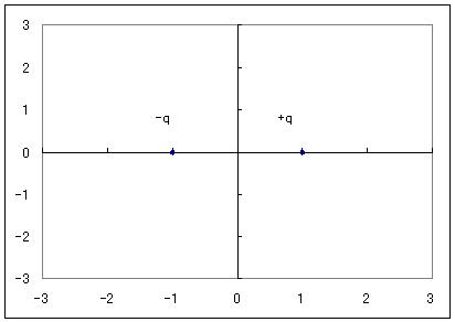色荷については3種類ワンセットなので慣例にならって赤青緑と書いた。 白は色荷を持っていないことに相当する。 質量に関しては今後の議論のために有無だけを書かせていただいた。 データ不足、勉強不足で自信のないところには?をつけた。 ここで、質量0の素粒子を赤くマーキングしたのには理由がある。 質量0の素粒子は相対論からの要請で常に光速で飛ぶことに注意してほしい。 この3種類の質量0の素粒子、そろって電荷がない。 もしこれに電荷があったらどうか? そのその例えとして衝撃波がふさわしいだろう。 衝撃波は、超音速旅客機が音速を超える際に発生する。 旅客機の出す音の速度が旅客機の速度に我慢できなくなって衝撃波を出すと考えてもらえばいい。 それと似たようなことが光にもいえる。 もっとも、光の場合は相対論が厳重に光速を壁にしているので、真空中では光速は相変わらず鉄壁だ。 質量が有限の粒子は超えられない。 しかし、真空中や空気中でない何か媒質の中、つまり屈折率が1でないものの中を通る光は遅くなる。 その光の速度を、有限質量の粒子が超えることを相対論は禁止していない。 このときに発生する衝撃波の光バージョンのことをチェレンコフ光と呼ぶ。 質量0の粒子が電荷を持っていたらチェレンコフ光を常に出していなければならなくなる。 光を出すのでその分エネルギーが減少する。 質量0の粒子のエネルギーは量子としての振動数によってのみ決まるので、 チェレンコフ光を出し続けるとどんどんエネルギーを失い、振動数は限りなく0に近づき 波長は際限なく長くなってしまうだろう。 それがおきないような「質量と荷に関するルール」があるべきなのではないか? 同様に、おそらく弱い相互作用の「弱荷」、強い相互作用の「色荷」についても 光速で走る質量0の粒子がそれらを持っていたら何かおかしなことにはならないだろうか? フォトンとグラビトンはその点無難である。 ウィークボソンは質量を持っているので調査の対象外である。 しかしグルーオンは僕の理解力では未知数である。 弱荷についてはおそらく持っていないだろうとしかいえないが、 色荷については少し調べてみた。 そもそもなぜグルーオンが8種類なのかというところからアプローチしてみた。 色荷の概念は少しややこしい。 電荷のように+と-の2種類でできているのではなく、3種類でできているから理解が難しいのだろう。 ちょうど光の3原色という3つ1セットの現象があってよかった。 だからこそ光の3原色を例えにイメージをわかせることができる。 上の図を見てほしい。 電荷だとこの横軸の+と-しかないので数直線で理解できる。 これはたまたま+と-が180度ずれているから偶然理解がしやすかった。 しかし、色の場合は上図のように120度ずつずれている。 そうすると赤は青の斜め左上といったような、直線状ではなく平面上の1点に位置してしまう。 緑は青の斜め左下になる。 もちろんこれは僕が勝手に約束したものなので、青・赤・緑の位置関係は120度ずれてさえいれば どうとってもいい。 そして、その色には「反色」というものがあり、色平面上で反対のところに居座っている。 青の反色は反青なので原点を対称とした青の真左に位置する。 赤の反色は反赤なので、赤と原点対称になって青のすぐ左下になる。 反緑も同様。 ここで、グルーオンというのは、クォークを結びつける粒子のことを言う。 4つの相互作用にそれぞれ4種類の素粒子が対応しているのは その素粒子のやり取りによって運動量を交換することによって、引力や反発力、あるいは素粒子同士の反応を及ぼすためだ。 グルーオンはクォークとクォークの間を行き来することで、クォーク同士を結び付けている。 しかしここで、クォークはグルーオンを介して色を交換しながら結び付けられているために グルーオンは色を持っているとされる。 ということは、クォークからある色を奪い去ってから、ほかの色を与えなければならない。 色を奪い去るということは、その反色を持っていることに相当するから 結局グルーオンは2色混合ということになる。 まず、青をほかの色にするグルーオンについて考えてみることにしよう。